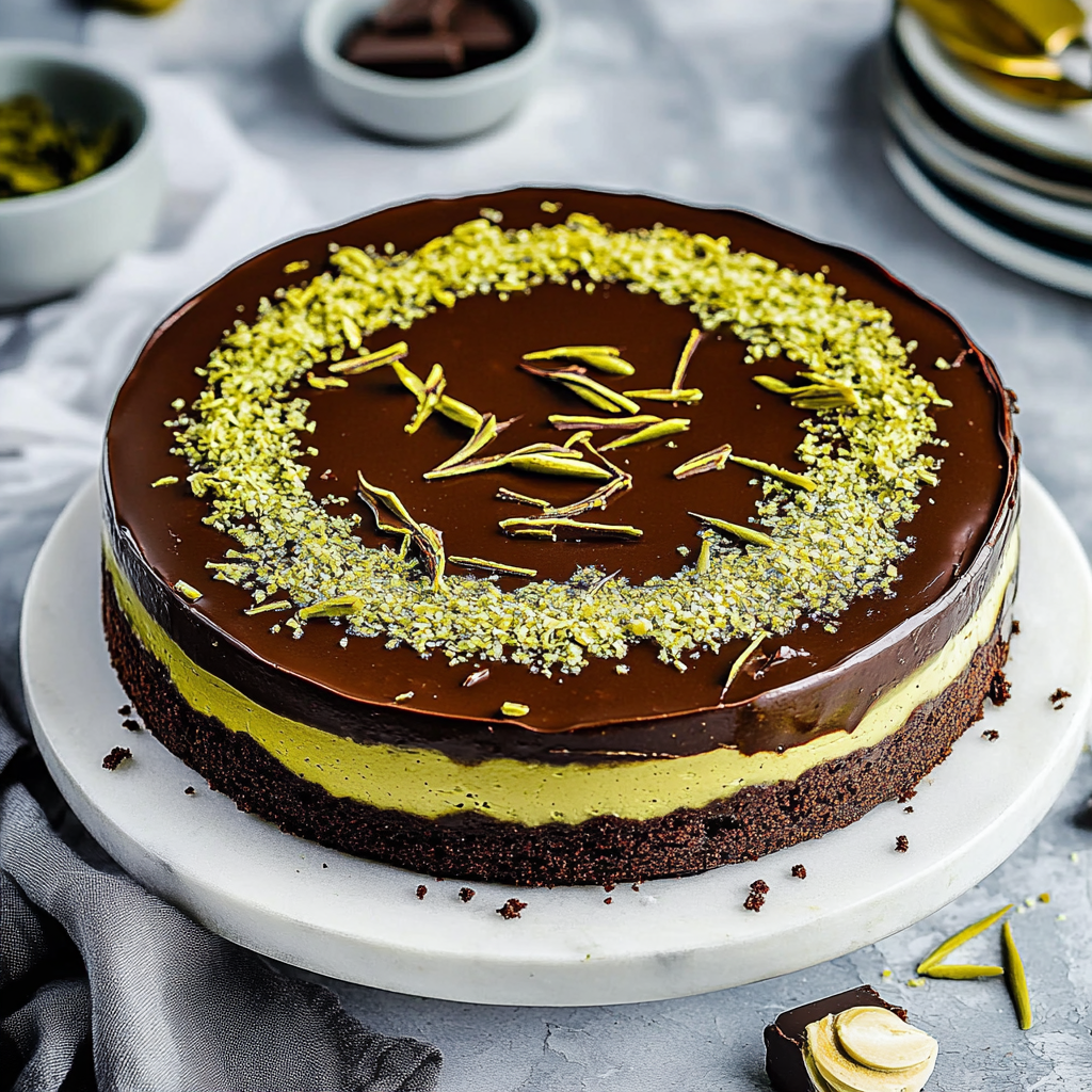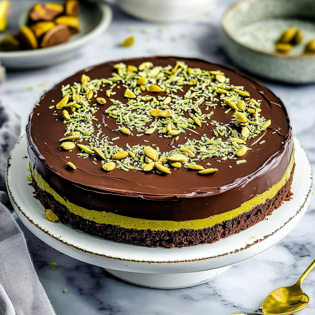 Indulge in the exquisite flavors of Dubai Chocolate Cake, a luxurious dessert that will captivate chocolate enthusiasts. This moist cake features rich chocolate layers complemented by a nutty pistachio filling, bringing an exotic twist to your dessert table. Perfect for celebrations or as a special treat for yourself, this cake promises to be the highlight of any gathering. Its elegant presentation, adorned with garnishes of pistachios and silky chocolate sauce, makes it as visually appealing as it is delicious.